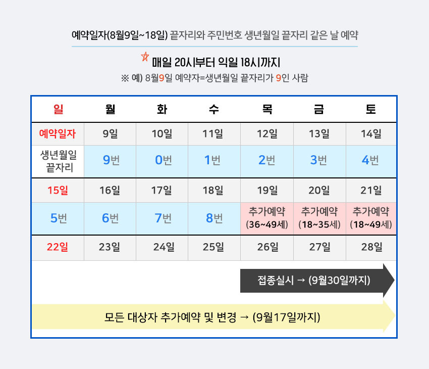 8 hours ago · 불법체류자 백신 예약 '혼란'.절차 어렵고 지자체마다 제각각. Aug 09, 2021 · 18∼49세 일반국민을 대상으로 한 코로나19 백신 접종 사전예약이 9일인 오늘부터 시작된다. 구체적으로 보면, 9일 20시부터 19일 18시까지는 10부제를 통한 사전예약을 실시한다. 16 hours ago · 백신 예약 전쟁? 앞으로 18~49세의 약 2200만명이 접종을 앞두고 있는데요.